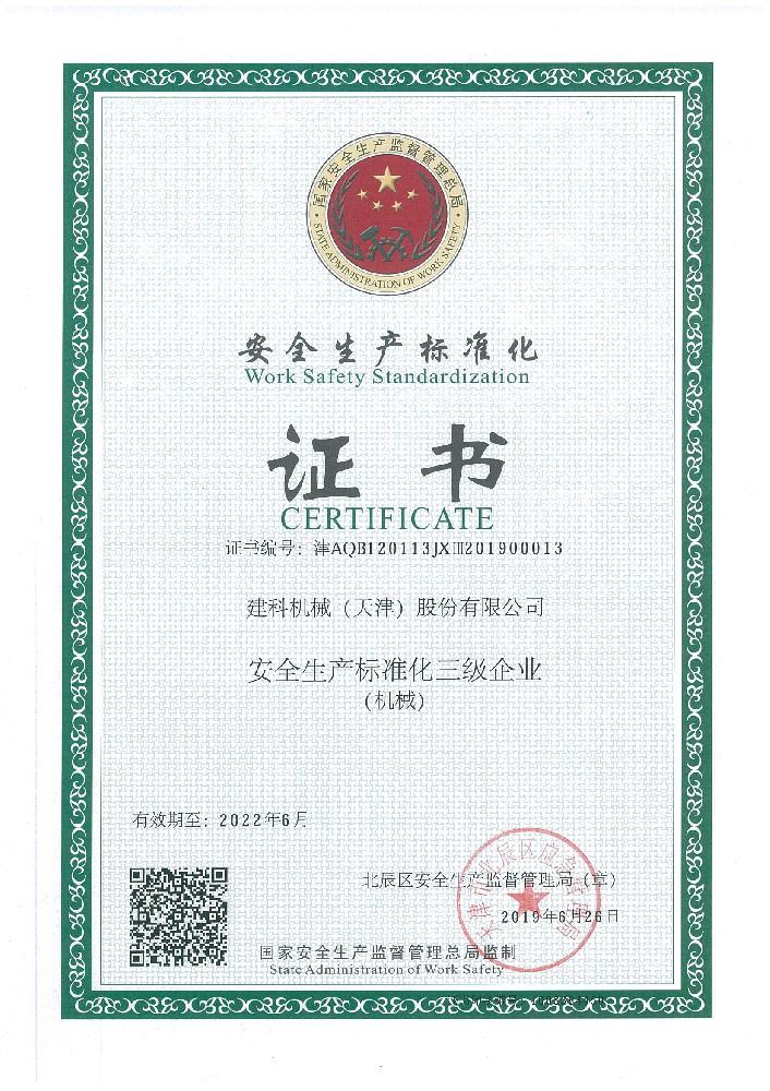安全生產標準化證書