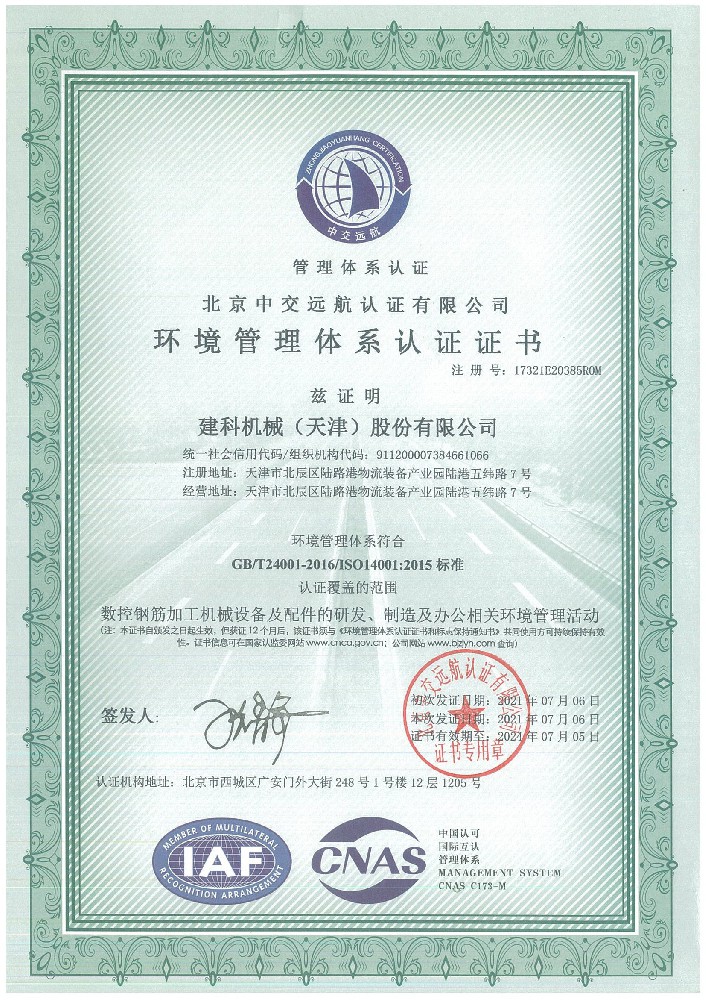 環境管理體系認證證書