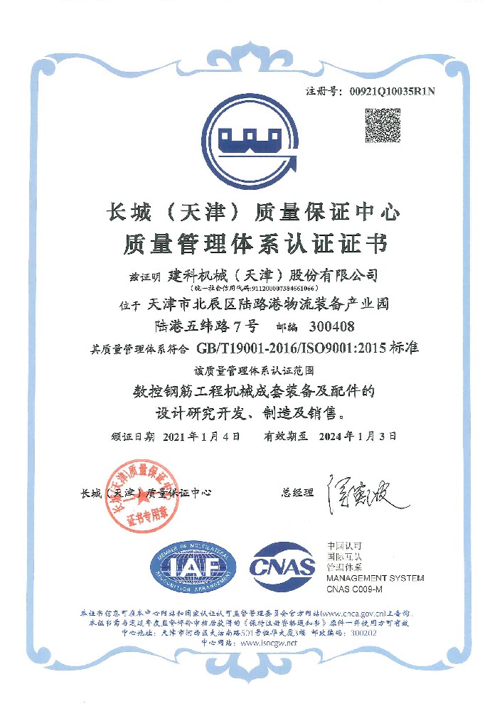 質量體系認證證書(長城)-1