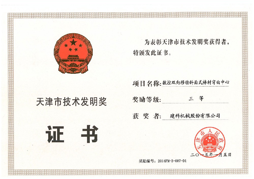 天津市技術發明獎-彎曲中心