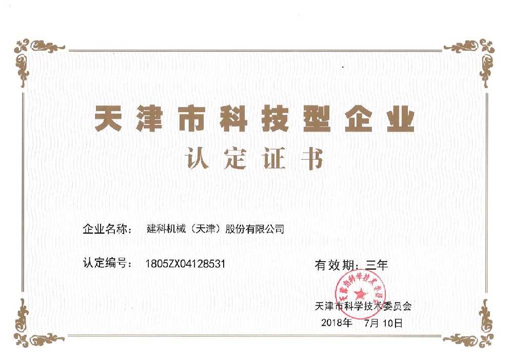 天津市科技型企業認定證書