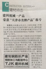 建科機械一產品榮獲“天津市名牌產品”稱號