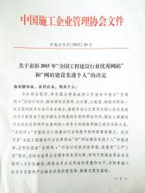 建科官網榮獲2015年“全國工程建設行業優秀網站”稱號
