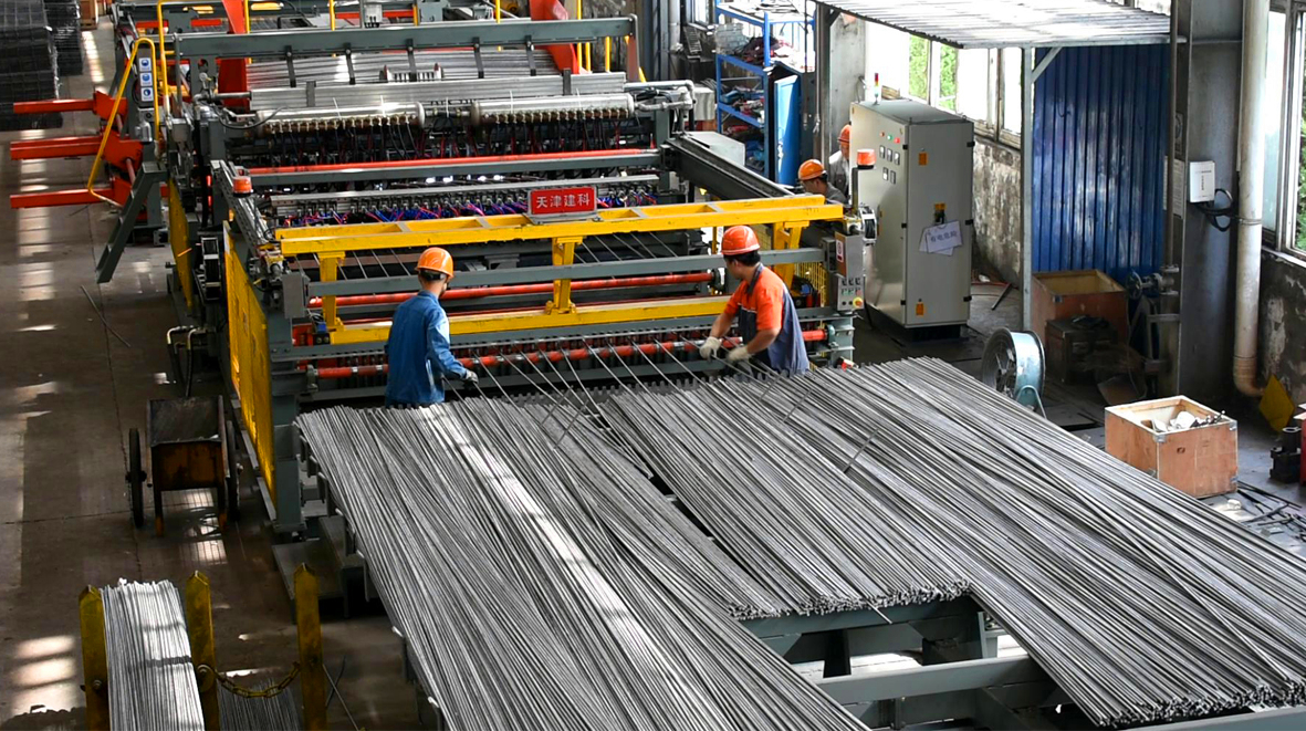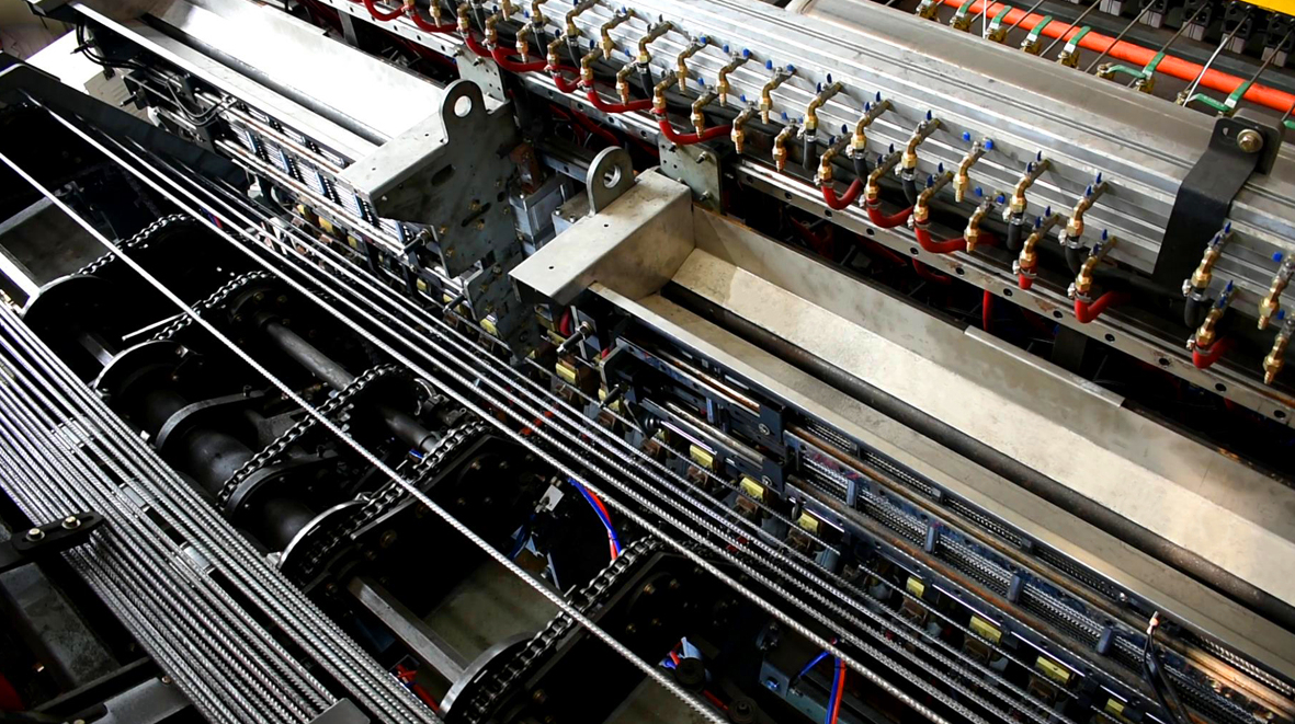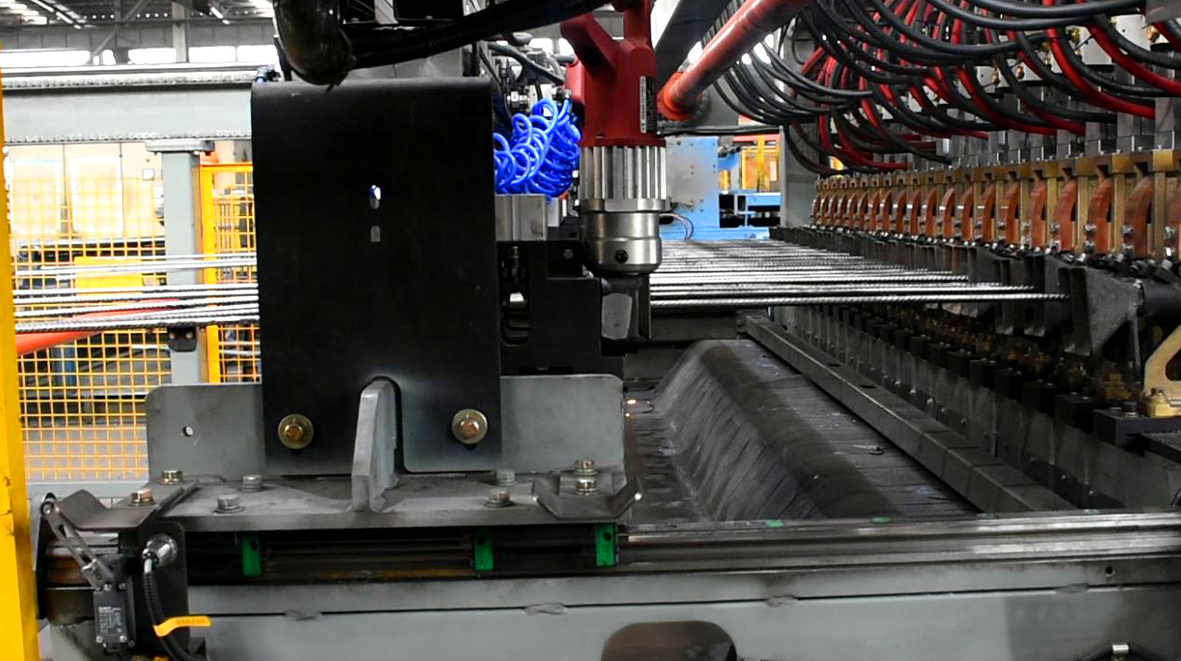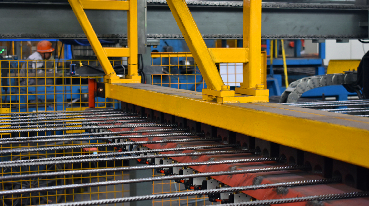數控(kong)鋼(gang)筋網焊接(jie)生(sheng)(sheng)產(chan)線GWC(Z)3300JZ-F線,是吸取了國(guo)外先(xian)進經驗(yan)、先(xian)進技術的(de)基(ji)礎(chu)上(shang)(shang),結合國(guo)內客(ke)戶實際生(sheng)(sheng)產(chan)需(xu)(xu)要而進行(xing)研制、生(sheng)(sheng)產(chan)的(de)焊接(jie)鋼(gang)筋網的(de)成套設(she)備(bei)(bei)。該設(she)備(bei)(bei)全自動上(shang)(shang)料,整機僅需(xu)(xu)要一人(ren)操(cao)作。可(ke)對多(duo)種鋼(gang)筋進行(xing)高(gao)質量交叉(cha)焊接(jie),具有產(chan)量大(da)、精(jing)度高(gao)、改(gai)型方便(bian)、操(cao)作故障(zhang)率低、節能(neng)性強(qiang)、消耗低、質量高(gao)等優(you)點。該設(she)備(bei)(bei)主要使用領域主要包括國(guo)內外專業化的(de)鋼(gang)筋加工的(de)商品配送(song)中(zhong)心,高(gao)速(su)鐵(tie)路、公路、地鐵(tie)、隧道等。