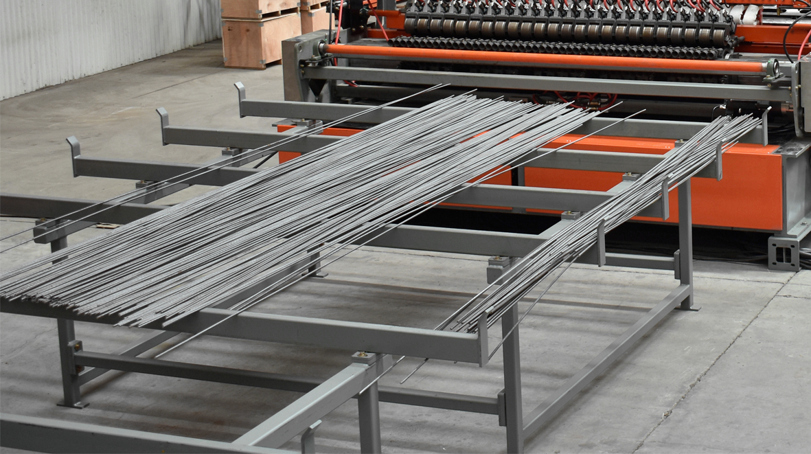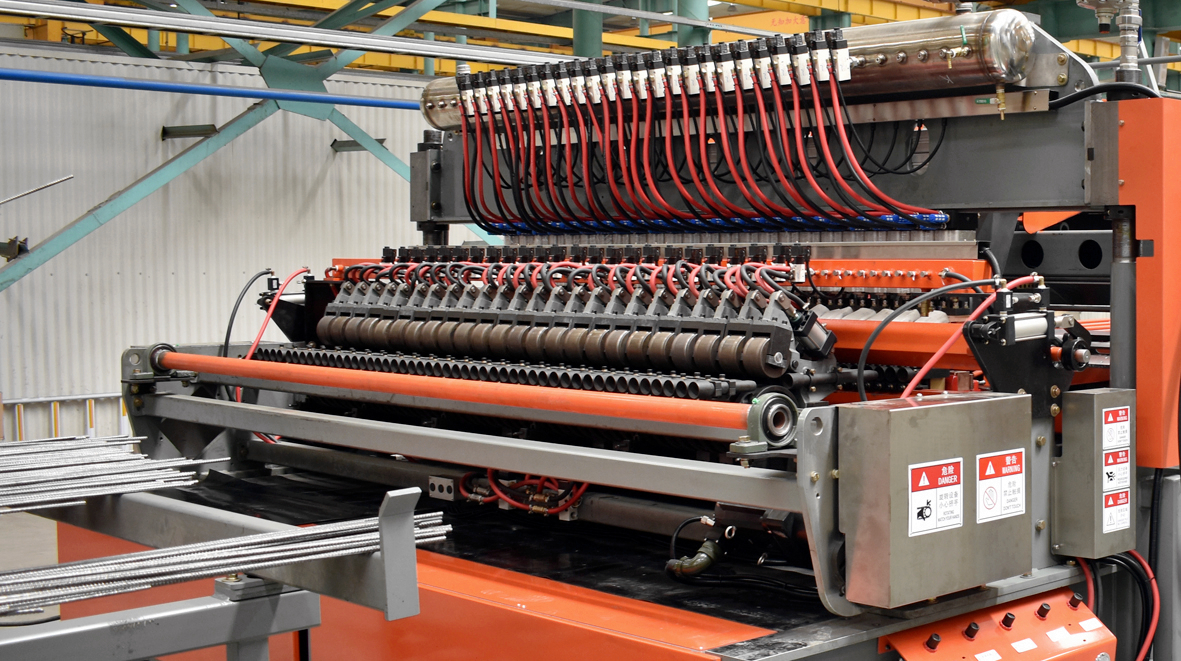 在吸取(qu)了國(guo)外先(xian)進經驗、先(xian)進技術的(de)基(ji)礎上,結合國(guo)內(nei)客戶實際生(sheng)產需(xu)(xu)要而進行研(yan)制、生(sheng)產的(de)焊(han)接鋼(gang)筋網的(de)成套設備(bei)。該設備(bei)橫(heng)筋和縱筋為盤條全自動上料,整機僅需(xu)(xu)要一人(ren)操作。可對熱軋(ya)帶肋(lei)鋼(gang)筋、冷(leng)軋(ya)帶肋(lei)鋼(gang)筋、光圓冷(leng)拔鋼(gang)筋進行高(gao)(gao)質量(liang)交叉(cha)焊(han)接,具有產量(liang)大、精度高(gao)(gao)、改型(xing)方便(bian)、操作故障(zhang)率低(di)、節能性強、消耗低(di)、質量(liang)高(gao)(gao)等優點。該設備(bei)主(zhu)要使用(yong)領(ling)域主(zhu)要包括國(guo)內(nei)外專業化(hua)的(de)鋼(gang)筋加工的(de)商品配(pei)送中心,高(gao)(gao)速鐵路(lu)、公路(lu)、地鐵、隧道等。