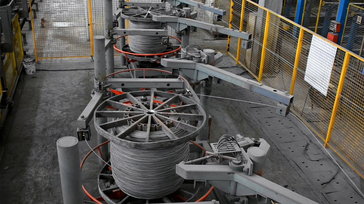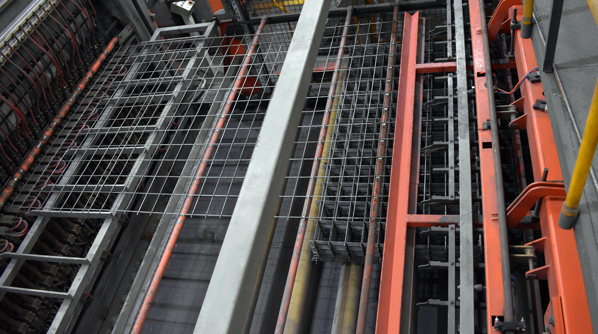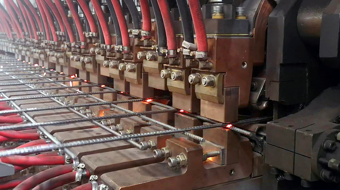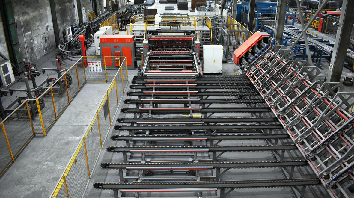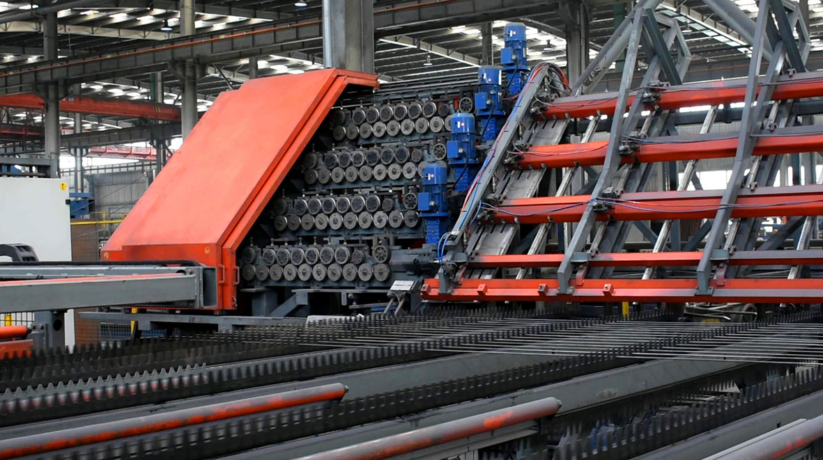 鋼(gang)筋(jin)(jin)(jin)(jin)網(wang)焊(han)接(jie)生(sheng)(sheng)產(chan)(chan)(chan)規(gui)格出(chu)現(xian)多(duo)元化(hua)(hua)、非標化(hua)(hua)、訂單化(hua)(hua)現(xian)象,鋼(gang)筋(jin)(jin)(jin)(jin)焊(han)接(jie)網(wang)的規(gui)格變化(hua)(hua)不斷的豐富,出(chu)現(xian)了(le)大量(liang)的非標網(wang),需(xu)要不斷的調整生(sheng)(sheng)產(chan)(chan)(chan)線,使得整個(ge)生(sheng)(sheng)產(chan)(chan)(chan)效率下(xia)降;同時,需(xu)要購入大量(liang)的鋼(gang)材備(bei)用(yong),有部(bu)分鋼(gang)材使用(yong)剩余部(bu)分要很(hen)長(chang)(chang)時間才能消化(hua)(hua),成(cheng)本壓(ya)力與(yu)日俱增(zeng);人力資源的緊張和用(yong)工成(cheng)本的增(zeng)長(chang)(chang),促使現(xian)有技(ji)術必(bi)須更新(xin)和創新(xin)發展,創新(xin)發展的方(fang)向在(zai)于(yu)集成(cheng)化(hua)(hua)、模(mo)塊化(hua)(hua)、自(zi)(zi)動化(hua)(hua)。 該設備(bei)主(zhu)要幫助客戶解決一下(xia)幾個(ge)問題:a、根據訂單采購鋼(gang)材,無需(xu)長(chang)(chang)期備(bei)用(yong)庫存;b、能實現(xian)縱(zong)筋(jin)(jin)(jin)(jin)、橫(heng)筋(jin)(jin)(jin)(jin)全部(bu)盤(pan)條(tiao)自(zi)(zi)動化(hua)(hua)生(sheng)(sheng)產(chan)(chan)(chan);c、小(xiao)批(pi)量(liang)連續生(sheng)(sheng)產(chan)(chan)(chan),更換網(wang)格大小(xiao)、鋼(gang)筋(jin)(jin)(jin)(jin)直徑均能實現(xian)無縫化(hua)(hua)連續生(sheng)(sheng)產(chan)(chan)(chan);d,調用(yong)不同規(gui)格的鋼(gang)筋(jin)(jin)(jin)(jin)全程(cheng)自(zi)(zi)動化(hua)(hua)操作,無需(xu)人工干預;e,橫(heng)筋(jin)(jin)(jin)(jin)可滿(man)足在(zai)縱(zong)筋(jin)(jin)(jin)(jin)上方(fang)和下(xia)方(fang)自(zi)(zi)動切換。主(zhu)要使用(yong)領域主(zhu)要包(bao)括國內(nei)外專業化(hua)(hua)的鋼(gang)筋(jin)(jin)(jin)(jin)加工的商品配送中心,高(gao)速鐵路(lu)、公路(lu)、地(di)鐵、隧(sui)道等。